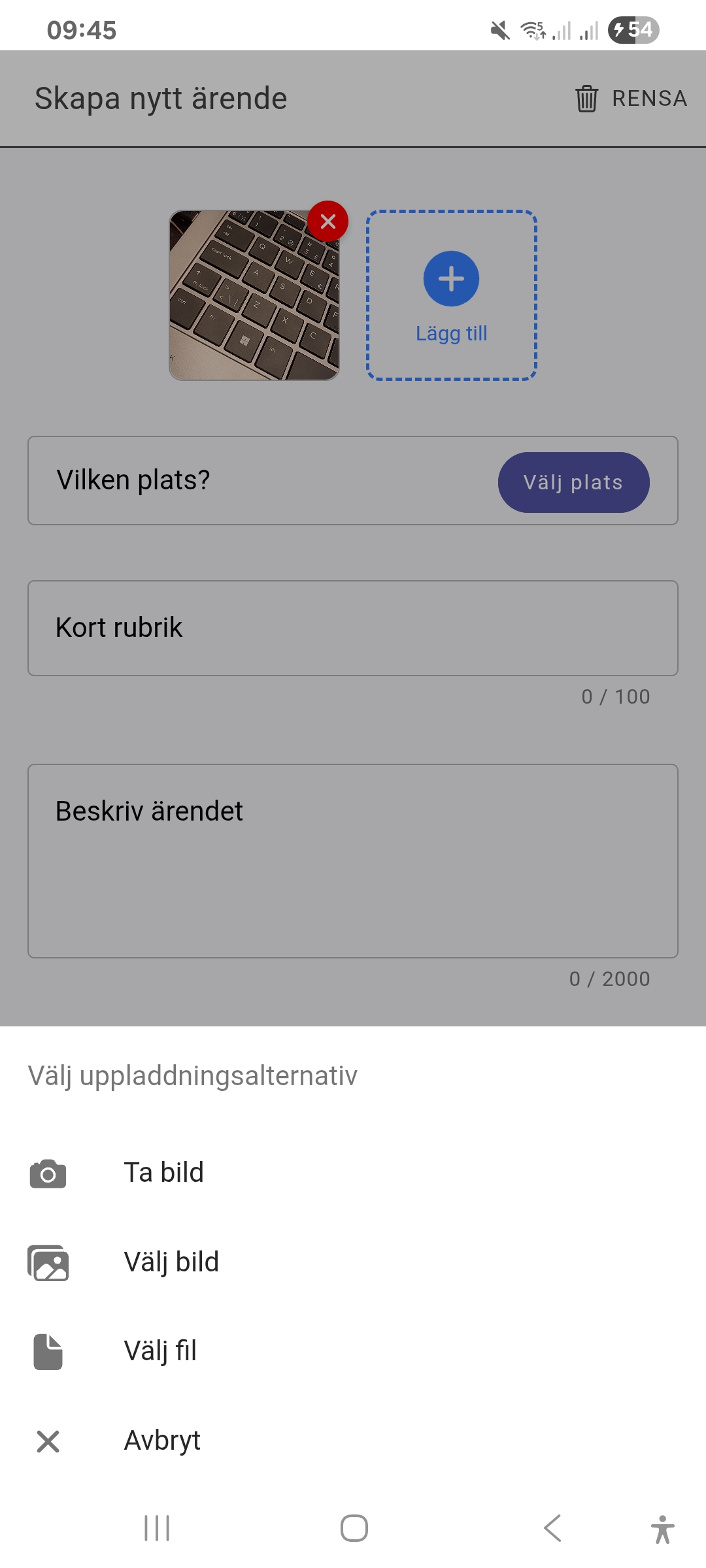 Bild från galleriNu kan du enkelt välja en bild direkt från ditt galleri när du skapar ett ärende.