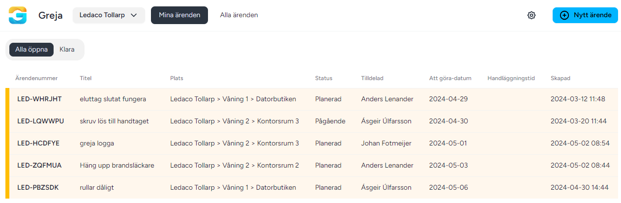 Ange starttidNu kan utförare enkelt ange en specifik tid för sina tilldelade ärenden. Den nya funktionen gör det smidigare att planera och säkerställa att alla uppgifter utförs vid rätt tidpunkt. Detta ger bättre struktur och underlättar både för utförare och rapportörer.